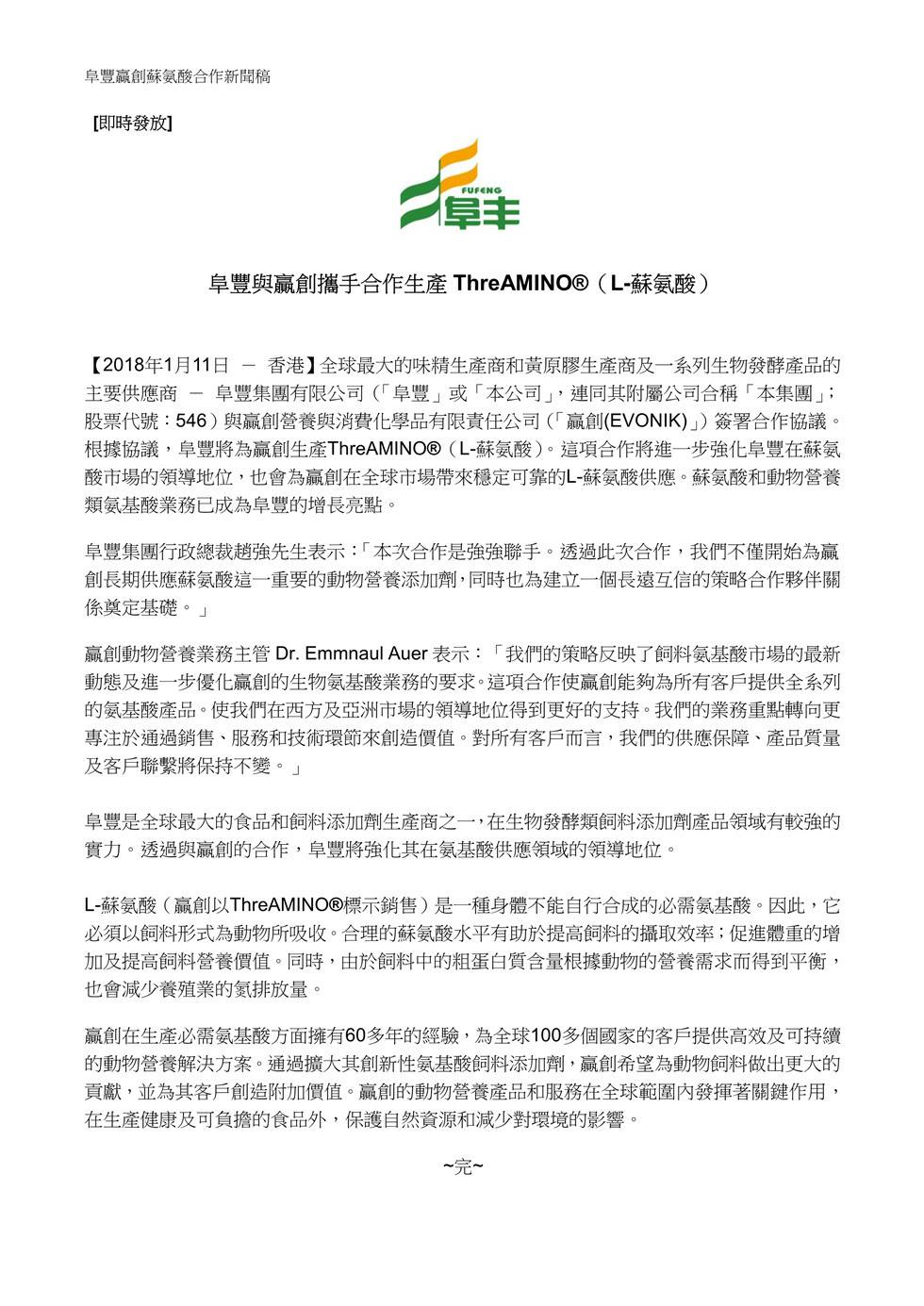 半岛官方端网站登录入口-半岛网(中国)与赢创携手合作生产ThreAMINO®(L-苏氨酸)